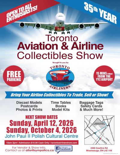 At Toronto Airliners, we host two exciting Aviation Collectibles Shows each year: one in the spring and another in the fall. These events are open to everyone—from seasoned collectors to curious newcomers. Explore an incredible selection of aviation memorabilia, meet fellow enthusiasts, and continue the legacy of this fascinating hobby.